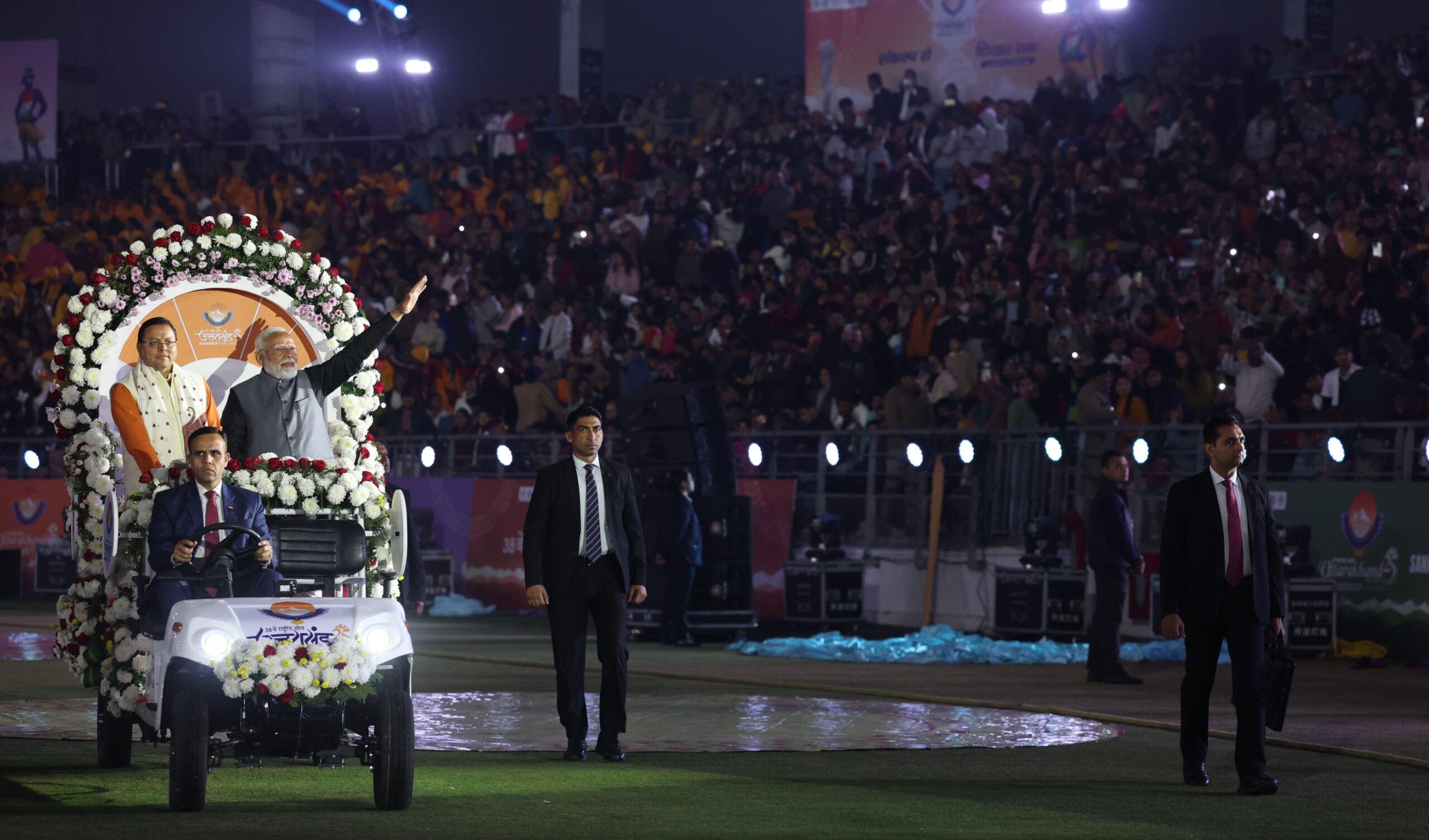 राष्ट्रीय खेलों की ग्रीन गेम्स की थीम पर प्रधानमंत्री प्रभावित नजर आए। ई-वेस्ट से पदक निर्माण, विजेता खिलाड़ियों के स्तर पर पौधरोपण जैसी पहल पर प्रधानमंत्री खूब बोले। उन्होंने इसके साथ ही, धामी सरकार के प्लास्टिक मुक्ति के लिए किए जा रहे प्रयासों को भी खुलकर सराहा।