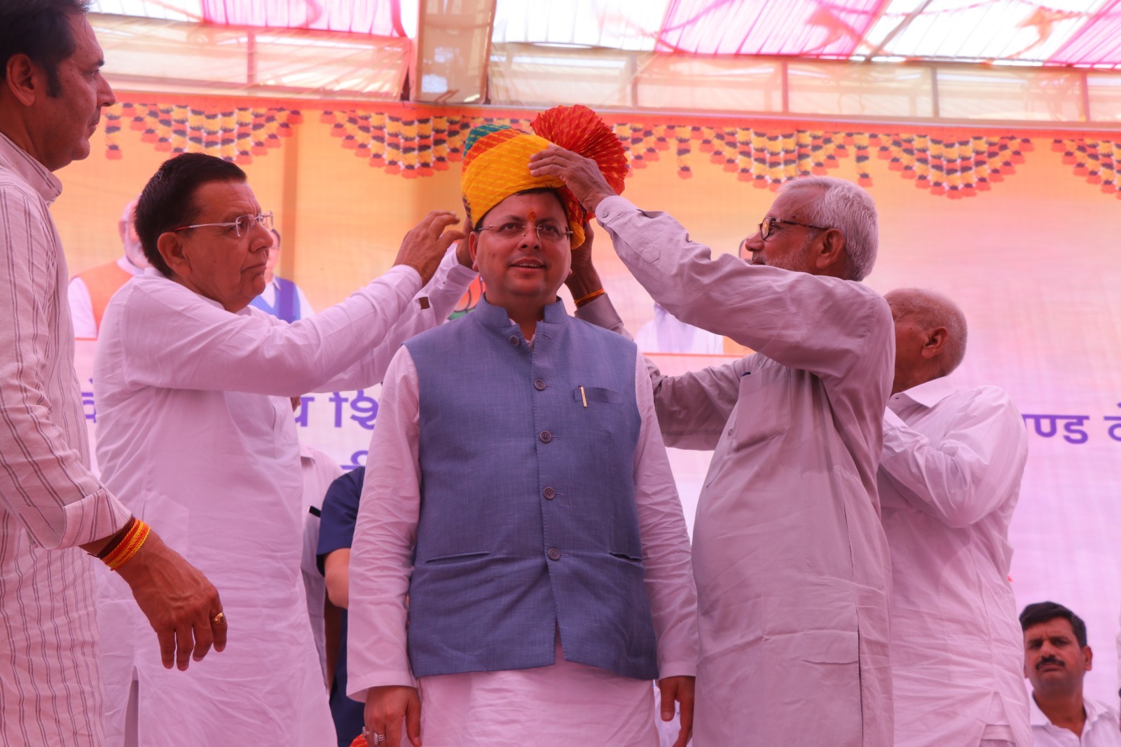 मुख्यमंत्री पुष्कर सिंह धामी के सम्मान में सोमवार को श्री गंगानगर राजस्थान के मानकसर गांव में क्षेत्रवासियों द्वारा सम्मान समारोह का आयोजन किया गया। मुख्यमंत्री ने कहा कि गुरु जंभेश्वर भगवान की पूण्यभूमि में आकर वे अविभूत है। उन्होंने कहा कि गुरु जंभेश्वर जी ने जीवन में 29 नियम अपनाने के लिए कहा था। उनके द्वारा दिये गए नियमों को आत्मसात कर आज विश्नोई समाज, वाणी पर संयम रखने के साथ ही अन्य नियमों का पालन कर रहा है।